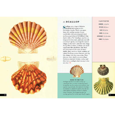 There are handy classification boxes identifying the biological levels of classification (think: kingdom, class, family, genus etc.) - great for science!